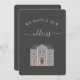 Cute design, in shades of grey, features your move details in modern script calligraphy.
