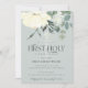 GREY IVORY WHITE AQUA FLORAL FIRST HOLY COMMUNION INVITATION