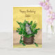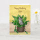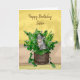Grey Kitten sitting in a Pot of Catnip Birthday Card