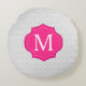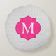 Grey Lattice Pattern Hot Pink Monogram Round Cushion