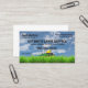 Lawn service business card. with a green and yellow zero turn lawnmower on it.