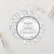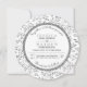 Grey leaves pattern round wedding invitation. The focus of this lovely wedding invite is a floral pattern made of leaves in grey and a white frame with grey scalloped outline that holds your wording.