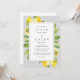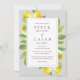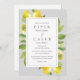 Grey invitation features lemon blossoms. Click the customise further link and use the design tool to modify this template. Contact me if you need help matching items or need a custom coordinating item. The default paper is semi-gloss but you can choose thicker paper and other finishes on the add to cart page.