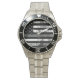 Has heft and feel of expensive stainless steel quartz watches. Good band with safety catch. I removed links, which is easy because engraved arrows show direction to push the linking pins. As always by this seller, the image (a railroad logo) is a perfect reproduction of my emailed image, and is precisely spaced and aligned.