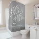 Personalised Grey and White Mr. and Mrs. Wedding Shower Curtain. Design by Elke Clarke©. Available at www.zazzle.com/monogramgallery. Classy, personalised, grey or grey linen background (printed photo effect), customisable with bride and groom names in white script font and wedding date. Beautiful design is perfect for wedding gifts, newlywed gifts, wedding anniversary gifts and more. Use edit menu to change colours or visit our store for more designs and colour options.