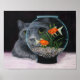 Grey Long Haired Cat and Fishbowl Poster