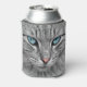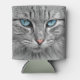 Grey mackerel tabby cat with blue eyes can cooler