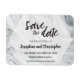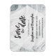 A modern 'save the date' design using a grey marble background with stylish typography. Personalise and customise this magnetic save the date card with it's easy to use template.