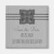 Regal and elegant Medallion Border Save the Date Magnet featuring a digital art metallic medallion and a three stripe border on a light grey background. This bold and stylish magnet is perfect for announcing your equally bold and stylish wedding. Easy to customise, simply add the details of your wedding in the text fields provided. Click on "Customise It" to find additional personalisation options such as changing fonts or text size.