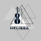 Minimalist design with a svg violin illustration, customisable name and text and triangle shapes in an abstract layout.