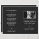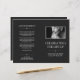 Clean and minimalist funeral program in dark grey and white, with elegant fonts. Add a photo of your loved one along with their name and years living. On the back you can write the obituary and program. Fold it yourself for a practical program!