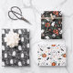 Grey Mixed Halloween Patterns Ghost Pumpkins Wrapping Paper Sheet