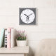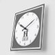 Classy modern grey monogrammed square clock. Great office clock and will go with a whole range of different accompanying decor options. Give as an office gift!