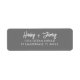 Grey return address labels with modern script. Personalise with your information and choice of colours. These are definitely our fan favourite and we don't blame them. Stylish and chic with a simple modern look.