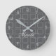 Grey Modern Squares Geometric Personalised Office Round Clock