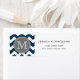 Cool cute geometric trendy navy blue and white zigzag chevron pattern with grey nameplate for your custom monogram initial letter. Chic monogrammed modern address labels.
