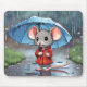 Cute grey mouse with a red coat holding an umbrella in the rain