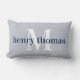 Personalise this blue-grey and navy pillow with baby's name and monogram for a perfect addition to his nursery. Light grey-blue pillow features baby's name in rich navy blue, overlaid on a single initial monogram in white. Add her birth date or a custom message to the back.