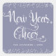 Grey New Year Cheer White Snowflakes Custom Name Square Sticker