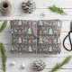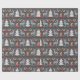 Grey Nordic Reindeer Christmas Tree Floral Holiday Wrapping Paper