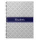 Grey on Grey Damask #3 Navy Blue Name Monogram Spiral Notebook