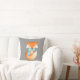 Grey, aqua, red orange and cream watercolor fox cub printed pillow. © Watercolor fox cub wrapped up warm art and design by Sarah Trett. www.sarahtrett.com for www.mylittleeden.com