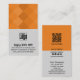 This Grey Orange Standard Business Card Size XX% Off Discount Card makes an elegant is great to thank existing customers and pass on a loyalty discount when surpassing a purchase amount and add an expiration date. It is part of the exclusive Grey Business Card Designs & Marketing Items collection. Crafted in a sleek portrait format, the card features an edgy grey orange design with a geometric patterned top half and a grey bottom half on the front and a solid colour on the back.