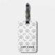 A pattern made of puppy paws and bones. Custom luggage tags in white and grey. Edit name to customise.