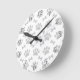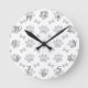 A pattern made of puppy paws and bones. Custom wall clocks in white and grey.