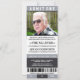 Grey and black sports ticket themed memorial service or funeral service invitations. They are designed to look like a sports ticket to celebrate the event of the season. Text details can be customised. You can also insert your own photo or pic as well.