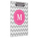 Show off your style in a fun way with this grey and pink chevron monogram clip board.