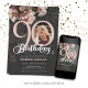 Grey Pink Lush Floral Photo 90th Birthday Party Invitation