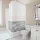 Grey, Pink Striped Shower Curtain. Soft greys, pink backed against linen make a traditional shower curtain for your home decor. Matching towel set and bath mat available. A timeless design that will add to the beauty of your home decor. We appreciate your visiting our online site and hope to see you back again soon. We have a wide range of home decor items for yourself and as gift giving ideas. Have a great day and greetings from Canada.
