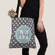 Grey Polka Dots, Mint Monogram & Personalised Name Tote Bag