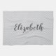 These towels are very pretty and extraordinary. The grey polka dot pattern serves as a beautiful backdrop with your name written in cursive grey font. Order yours today!