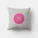 Grey Quatrefoil Pattern, Hot Pink Monogram Cushion
