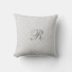Elegant and modern light grey and white chic Moroccan quatrefoil pattern monogrammed decorative throw pillow. Fully customisable, add your initial for a truly unique home decor item.