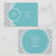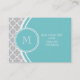 Grey Quatrefoil Pattern, Teal Monogram Business Card