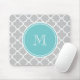 Grey Quatrefoil Pattern, Teal Monogram Mouse Pad