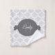 Add an elegant touch to your bath with a Grey Quatrefoil Personalised Bath Towel Set. Towel set design features a simple quatrefoil background and fancy emblem to personalise with your name and monogram. Additional gift items available with this design as well as a variety of colours.