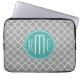 Grey Quatrefoil with Custom Mint Monogram Laptop Sleeve