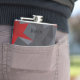 Grey, red randomly arranged triangles. hip flask