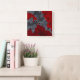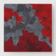 Grey, red randomly arranged triangles. square wall clock