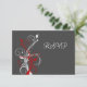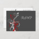 This modern and trendy red, grey, and white floral reply card matches the wedding invitations shown below. If you require any matching items in this design, please email your request to niteowlstudio@gmail.com.
