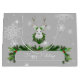 Gift your Christmas presents this holiday season with a Grey Reindeer Gift Bag. Gift bag design features a festive reindeer wearing a Christmas wreath adorned with holly berries and falling snowflakes and a holiday greeting box decorated with holiday garland. Additional gift and holiday items available with this design as well.