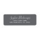 Simple and elegant address return sticker in a deep grey. The font style, font size and colour can be changed by clicking on "customise further."