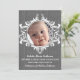 Sweet and charming Rustic Swirls Baby Announcement featuring an elegant flourish swirl ornament and a faux wood texture background in charcoal grey. This whimsical design with vintage flair is perfect for announcing the birth of your new bundle of joy! Easy to customise, simply add the details of your new baby and replace the photo with one of your own. Click "Customise It" to find more personalisation options.