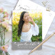 Make sure all your friends and relatives will be able to celebrate your daughter’s milestone graduation! Send out this girly, stunning, simple, modern, personalised photo “Save the Date” postcard for an event to remember. A fun, playful visual of white script handwriting and cute, playful hearts, along with her name, class year, and school, overlay a soft grey band. On the front, add the photo of your choice and personalise the custom text with your grad’s name, school and class year. Your custom message and return address adorn the back. Matching invites, thank you cards, cap toppers, plaques and other graduation goodies are also available in this trendy and stylish collection. Guaranteed to add stylish fun to her special occasion!