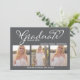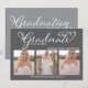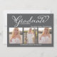 Celebrate your graduate with this elegant three photo graduation announcement featuring stylish script typography and a modern grey background. Personalize with your graduate’s name, class year, and school information. The front displays three senior portraits while the back can include graduation party details, open house information, or a personal message to family and friends. A timeless design perfect for high school or college graduation announcements and celebration invitations.