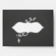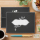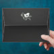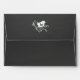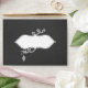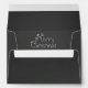 Black chalkboard look envelope with a decorative white banner with hanging ornament on front that you can hand write your addresses on, a decorative grey bird on the outside back flap, and fancy grey text that reads Merry Christmas on the inside flap! This envelope matches our Grey Scrolls Chalkboard holiday cards, postage, stickers, and address labels!